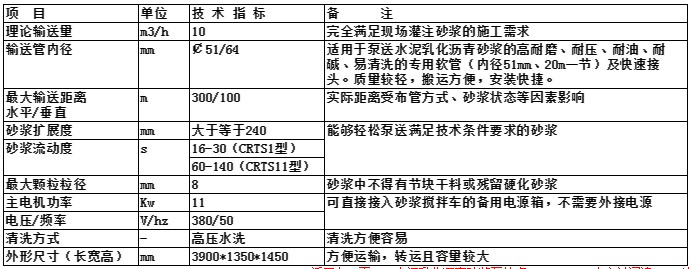 二、水泥乳化瀝青砂漿泵主要技術(shù)參數(shù)